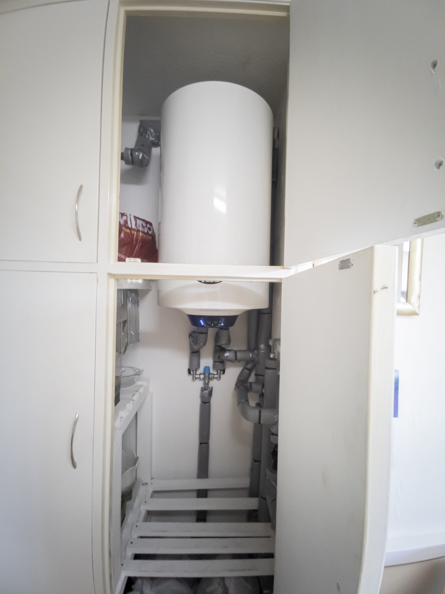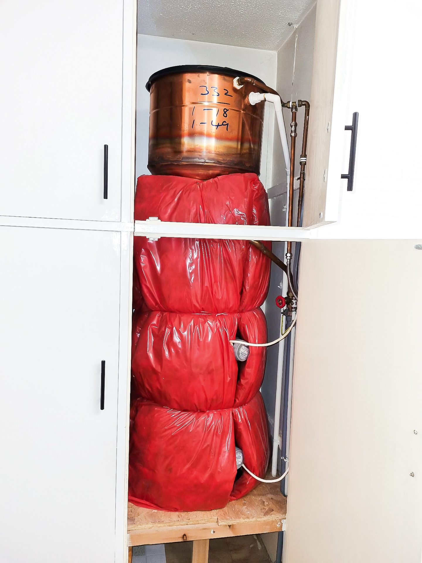 Note that the first image of the boiler with the red wrapping indicates the ‘before’ state. The second image illustrates ‘after’.